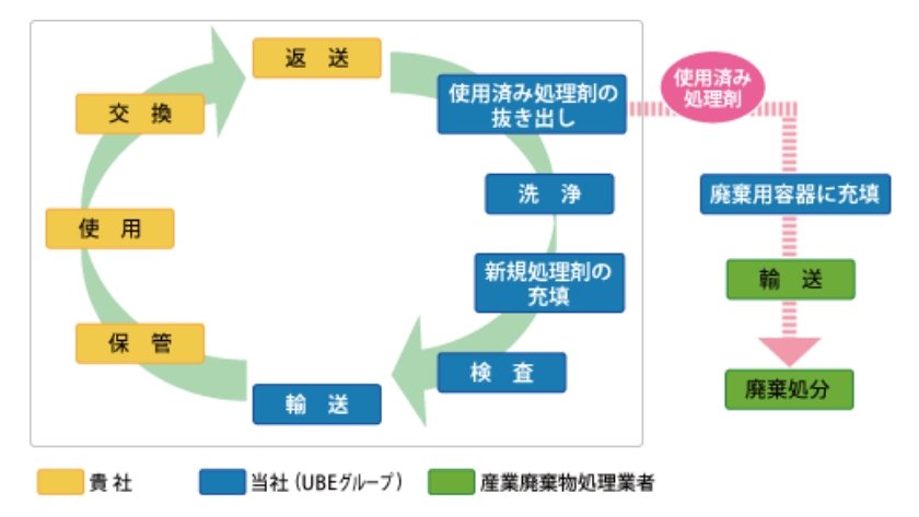 - A spent treatment agent is handled as industrial waste once it is removed by UEL, a subsidiary of UBE, eliminating the need for users to deal with troublesome procedures.